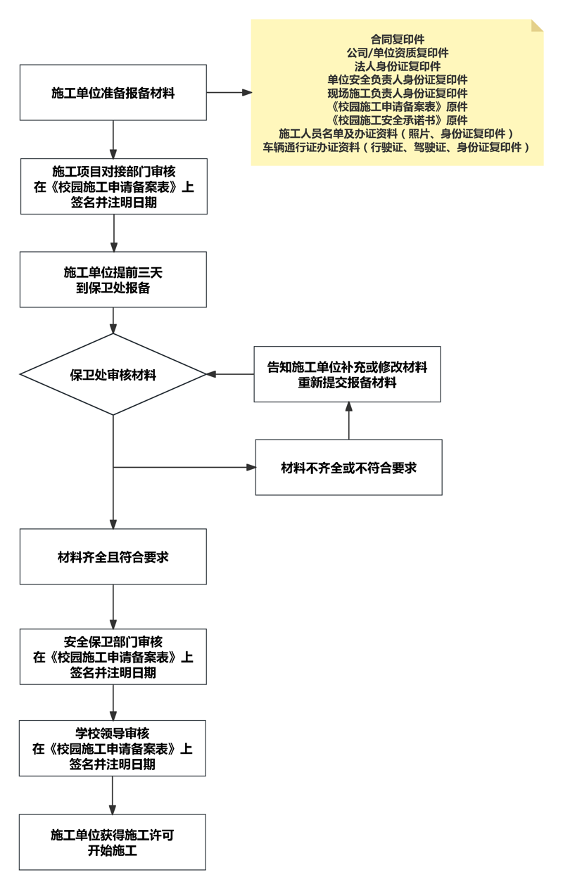 2、请各进场施工的单位提前三天到保卫处报备,如不按规定备案,保卫处有权禁止人员、车辆进入。