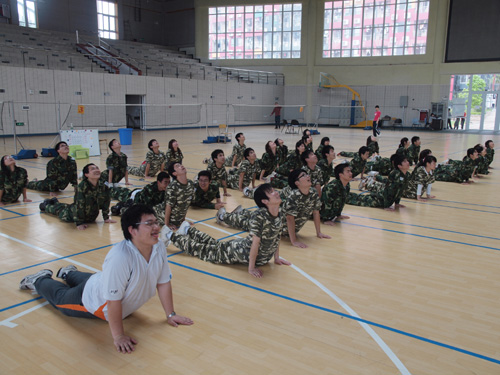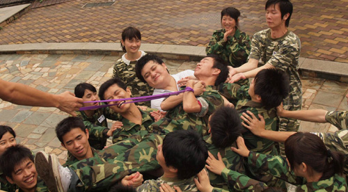 一天的培训过程中,教练杨智翼老师与周云老师根据要求给学生设计了不同阶段的课程,由破冰组队到极速时限,信任背摔到跳出真我,由攀岩到毕业墙,每个项目都是在挑战人的极限、激发潜能,培养队员的自信心与团队合作能力,尤其是极速时限,看似三岁小孩都会玩的拍数字游戏,十八九岁的大学生却在玩的过程中因为屡屡出现小差错,而导致全军覆没,甚至还要眼睁睁看着队友被罚做俯卧撑后精疲力竭地趴在地上,自己只有在旁边悔恨;而信任背摔所培训的也是信任与挑战自我的能力,相信你的队友,你就倒下去,相信自己能行,你就倒下去!