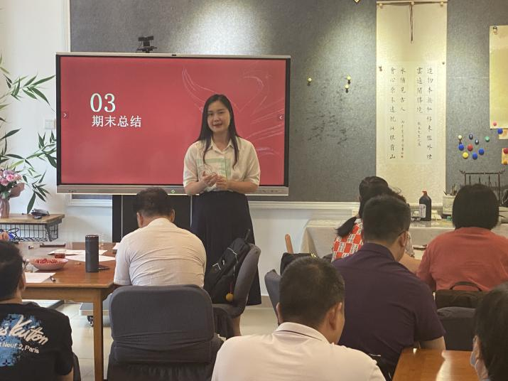 7月7日上午,博雅教育学院全体教师齐聚在清远校区博雅文化创意小街书画坊举行“说课”展示比赛。经过前期两轮教研室内部测评,选拔出了8名教师参与说课展示,全体教师进行观摩学习。