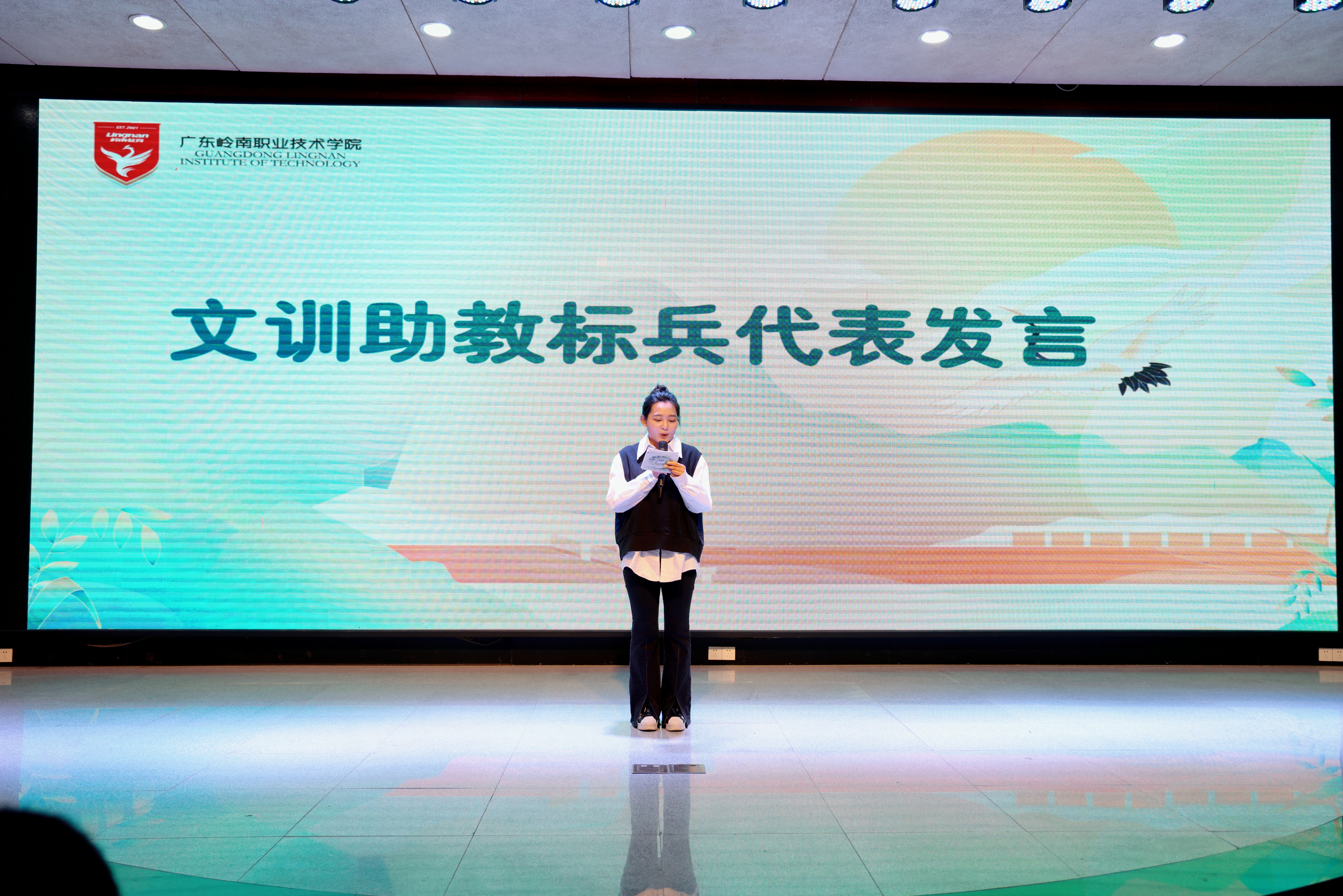 颁奖结束后,由文训助教标兵代表谢慧发表感言,总结文训期间的工作内容,为为期8天的助教工作画下完美的句号。最后,她对今后三年的大学生活许下期望,相信在今后的大学生活里,一定会发扬文训中继承的优良品质和作风,努力提高自己,在学习上在道德品质培养上交上一份满意的答卷。