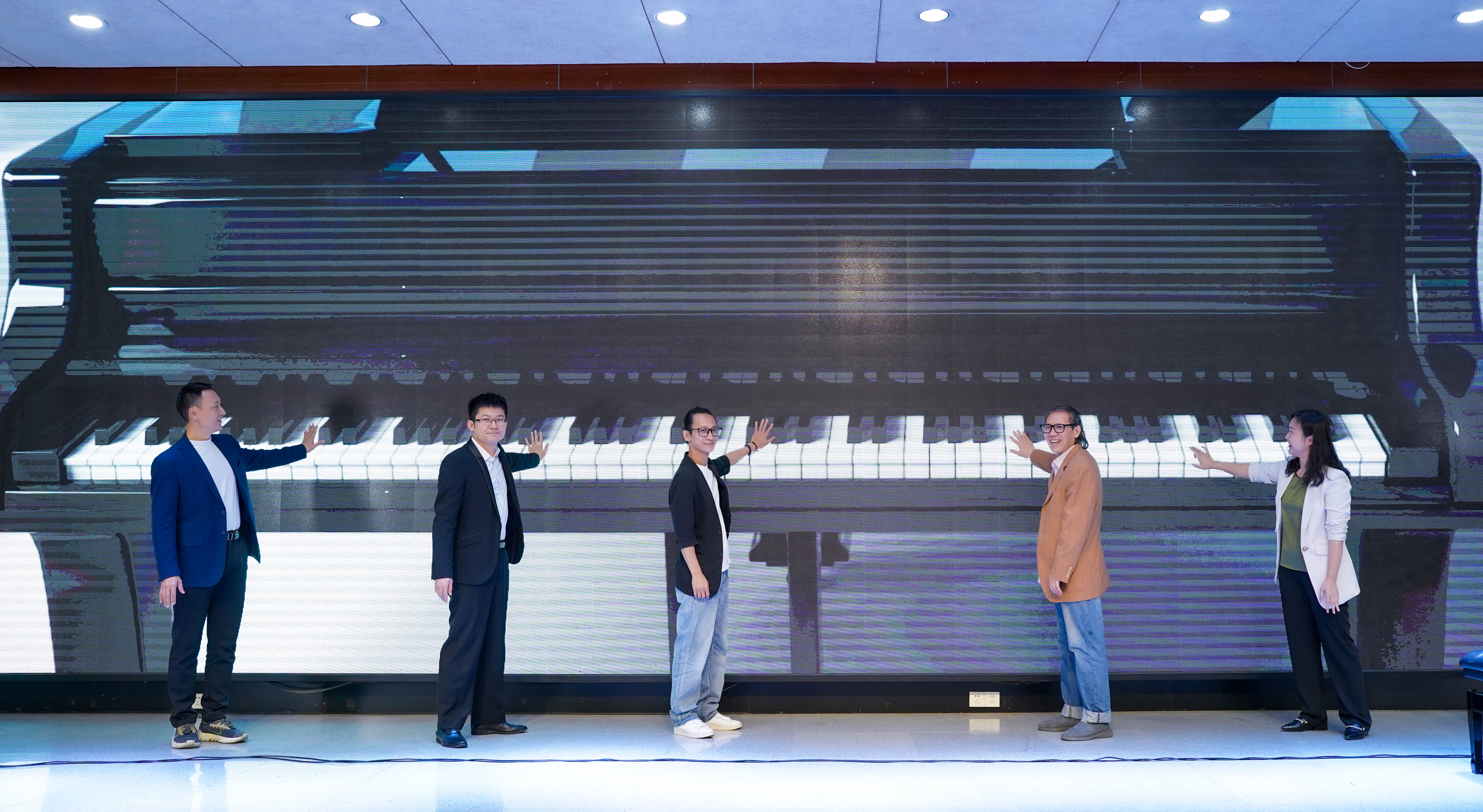 活动现场与会各位领导通过共同奏响屏幕上的巨型钢琴,用C大调一级和弦启动揭幕仪式,开启钢琴实践基地全新的征程,代表着从这里将会诞生无限种音乐的可能,培养无限多音乐的人才,为清远的音乐事业注入无限的活力和创新。