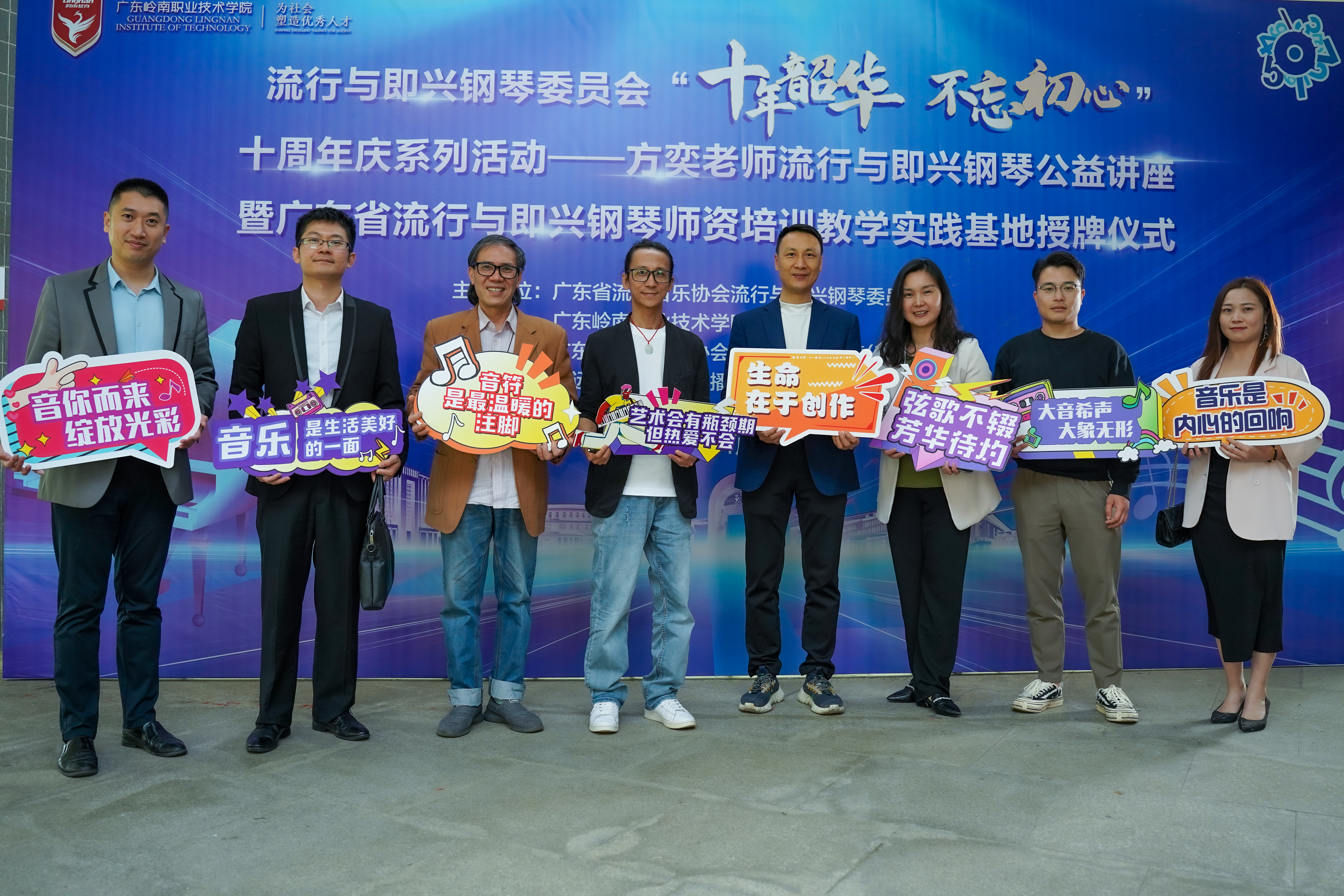 202348,由广东省流行音乐协会流行与即兴钢琴委员会、广东岭南职业技术学院、广东省流行音乐协会流行与即兴钢琴(清远)委员会、清远市利云文化传播有限公司主办的流行与即兴钢琴委员会“十年韶华 不忘初心”十周年庆系列活动——方奕老师流行与即兴钢琴公益讲座暨广东省流行与即兴钢琴师资培训教学实践基地授牌仪式在广东岭南职业技术学院博雅报告厅圆满举办