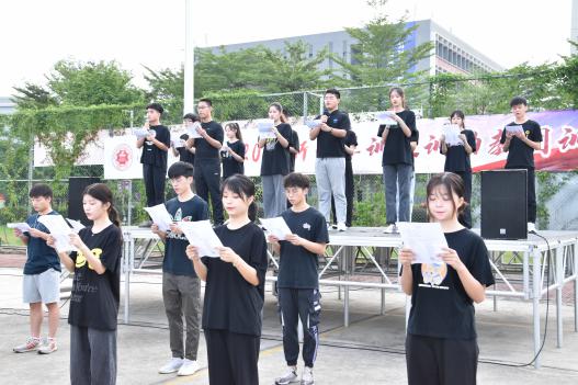 为进一步鼓舞士气,各书院领导分别为书院助教团代表进行军训文训工作任命,接过军训文训任务的各位教官、助教无上光荣、时刻整装待发。教官团代表吴水良同学带领全体教官团、助教团进行庄严宣誓,他们将勇挑重担,坚定不移地完成学校安排的各项军训文训任务,发扬岭南学子的优良作风。