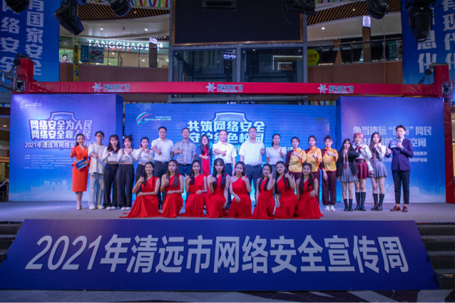 为积极响应2021年国家网络安全宣传周活动,增强学校师生网络安全意识,提高网络安全技能,养成守法的行为习惯。10月11日晚,由中共清远市委网络安全和信息化委员会办公室主办,清远市广播电视台、清远市教育局、清远职教城事务中心以及多所院校承办,以“共筑网络安全,守护绿色校园”为主题的网络安全宣传进校园的专场演出在清远市顺盈时代广场举行。