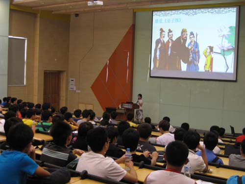 2011年9月14日上午8点20分,我校全面开展对2011级新生为期四天的入学教育,由我院语文/国学教研室7位教师承担“国学经典教育”的授课任务,以讲座形式解读《弟子规》。