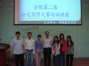2011年11月18日下午13点50分,岭南职院第二届大学生公文写作比赛培训讲座在第一教学楼西阶梯教室如期举行,来自各二级学院近两百名学生和博雅教育学院大学语文与国学教研室部分教师代表聆听了讲座。