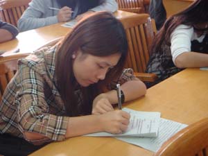 首先,为保证比赛的公正、公平,避免泄题情况的发生,我们特别设计了两套不完全相同的试卷;其次,大赛的试题在去年的基础上有所调整,新增加了选择题、填空题两种新题型,考试时间则由原来的两小时压缩为一个半小时。但从赛后的反馈来看,绝大多数同学认为题目比想象中的容易,对获奖较有信心,这反映出本次参赛选手具备了较强的应用文写作实力。