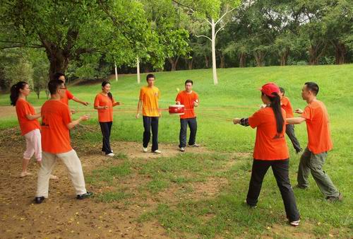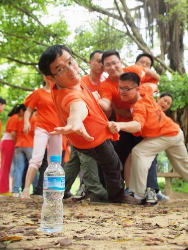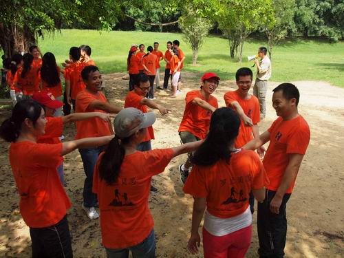 上午的培训,在一系列集中注意力的游戏中开始了,首先是拍掌游戏和拍颜色游戏,在游戏进行中,学员们都非常的投入和积极,达到了很好的效果。第二项是团队组建,将学员分成四组,展示团队风采并阐明建队思路。接下来就是团队合作的游戏,“亲密一刻”、“水中捞月”、“鼓舞飞扬”等一系列的团队合作游戏中,学员们的团队协作能力和团队精神得到了考验和提升。在上午培训进行当中苏张龙、罗祥琪、叶志辉和梁嘉进同学花了整个上午的时间将下午将进行的定向越野项目的点标全部定好。