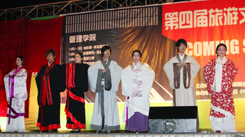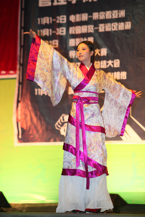 汉文化展示——汉服 来源: 发布时间:2010-11-06 00:00:00 浏览次数: 次 【字体:小 大】 11月4日晚上七点,我院学生应邀参加管理学院举办的第四届旅游文化节。 在清雅的古琴声中,我院学生身穿高领束带、宽衣大袖的传统汉服,踱着雅致的步伐徐徐走来,展现了汉代服饰飘逸潇洒的风格,立即成为了全场的焦点。 此次展出的汉服款式有曲裾、直裾以及周制礼服。我院通过这次展示,让师生们进一步了解了汉服的历史和文化价值,弘扬了汉文化的多姿多彩。(文,陈燕娜/图,朱青) 分享到: 【打印正文】