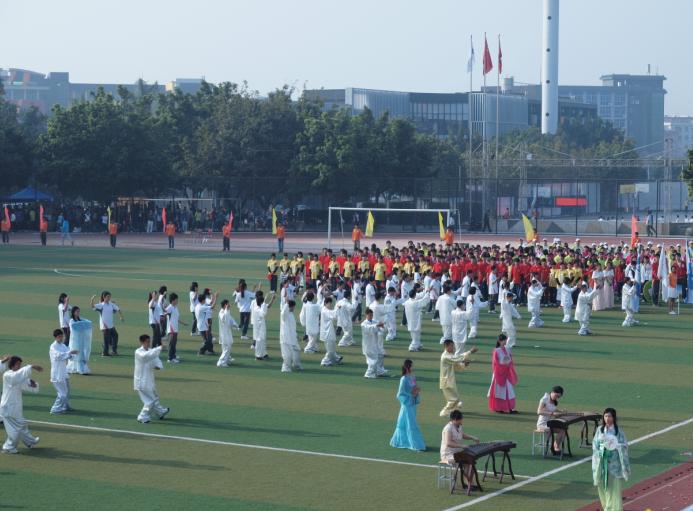 会上,丁纪平书记致开幕辞,随后太极拳、汉服展示、古筝演奏、诗词朗诵、激情啦啦操等节目把开幕式引向高潮,最后由运动会委员会程翠英主任发令,宣布第十届田径运动会暨第二届教职工趣味运动会开幕。