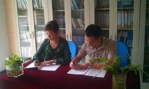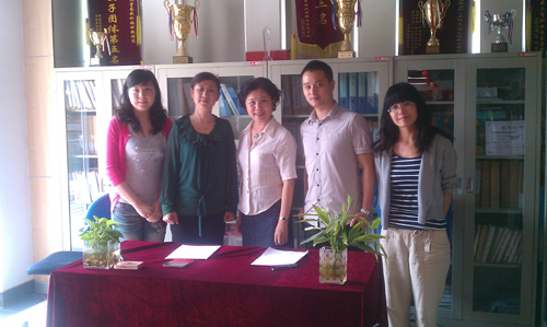 2011年4月11日星期一下午三点钟在博雅办公室二楼,来自广州市黄埔星海艺术培训学校的关丹校长和博雅教育学院尚燕乔副院长、音乐表演专业全体教师出席了校企合作签字协议。