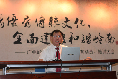 2009年7月9日上午,广州岭南教育集团举办了主题为“弘扬优秀传统文化,全面建设和谐岭南”的国学培训讲座,来自集团各单位和各部门近400名教职工参加此次培训学习,整个会议由博雅教育学院院长尚燕乔同志全面主持。