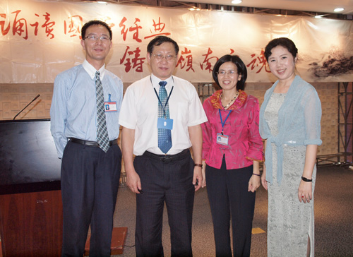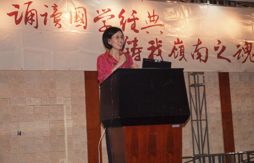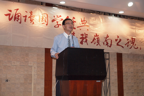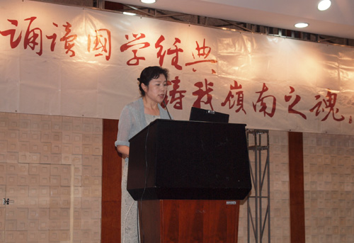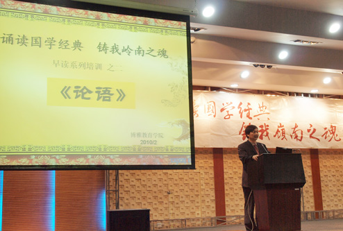 国学早读《论语》培训——3月4日简讯 来源: 发布时间:2010-03-05 00:00:00 浏览次数: 次 【字体:小 大】 郧建国助理作动员讲话 尚燕乔院长作主持工作 2010年3月4日下午14:00在学院图书馆五楼会议室举办了主题为“诵读国学经典,铸我岭南之魂”的国学早读“论语”教师培训讲座,由博雅学院大学语文与国学教研室主任陈淑仪主讲,尚燕乔院长主持,来自学院近400名教职工参加了此次培训学习(图/杨智翼,文/朱青)。 陈淑仪主任作《论语》早读讲座 李峻副校长作总结讲话 俞仲文校长(左二)、李峻副校长(左一)、 尚燕乔院长(右一)、陈淑仪主任(右二) 分享到: 【打印正文】