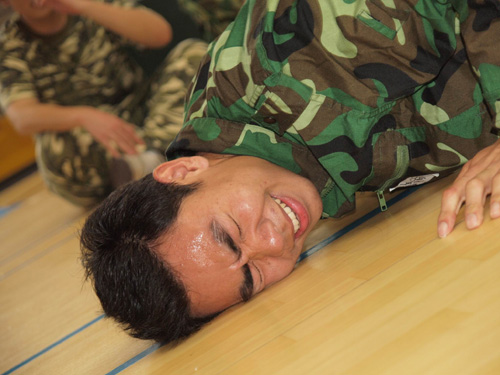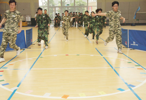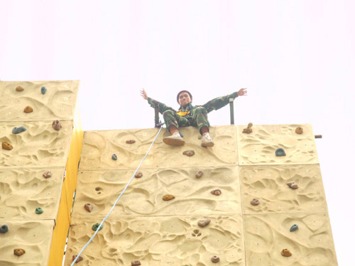 一天的培训过程中,教练杨智翼老师与周云老师根据要求给学生设计了不同阶段的课程,由破冰组队到极速时限,信任背摔到跳出真我,由攀岩到毕业墙,每个项目都是在挑战人的极限、激发潜能,培养队员的自信心与团队合作能力,尤其是极速时限,看似三岁小孩都会玩的拍数字游戏,十八九岁的大学生却在玩的过程中因为屡屡出现小差错,而导致全军覆没,甚至还要眼睁睁看着队友被罚做俯卧撑后精疲力竭地趴在地上,自己只有在旁边悔恨;而信任背摔所培训的也是信任与挑战自我的能力,相信你的队友,你就倒下去,相信自己能行,你就倒下去!