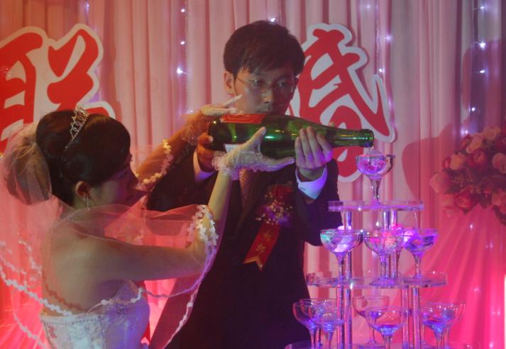 30日晚上7时许,婚宴在汇侨大酒店隆重举行。双方父母喜气洋洋,新郎新娘喜上眉梢,亲朋好友祝福连连。