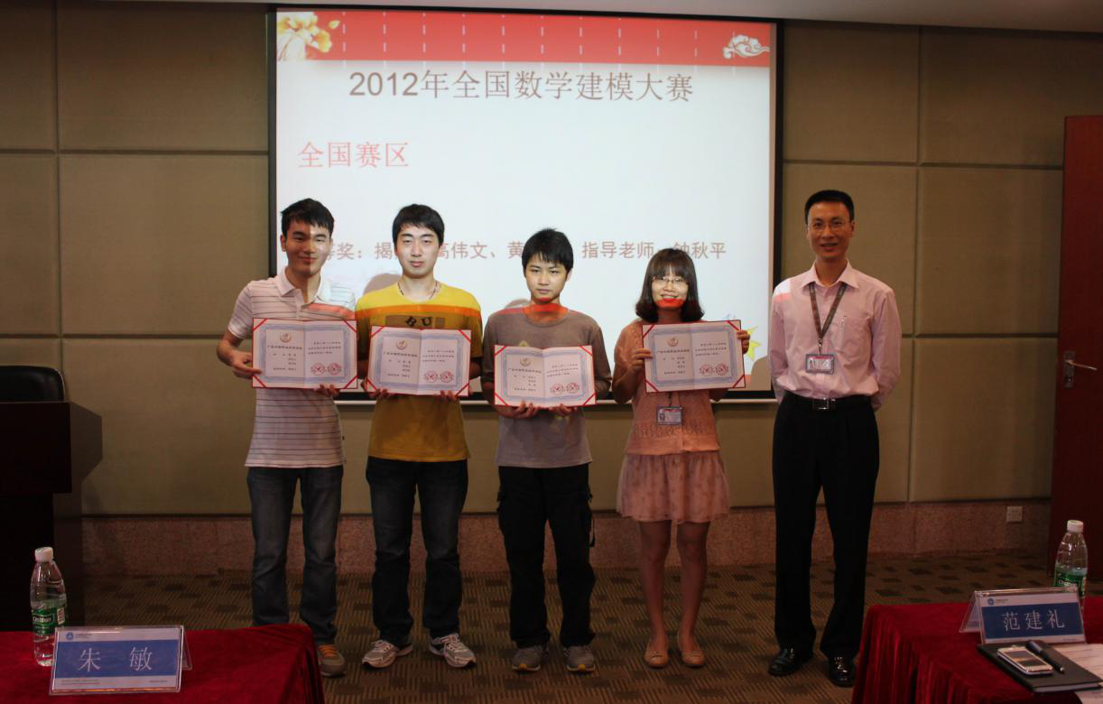 2011、2012连续两年我校荣获全国大学生数学建模大赛国家一等奖。