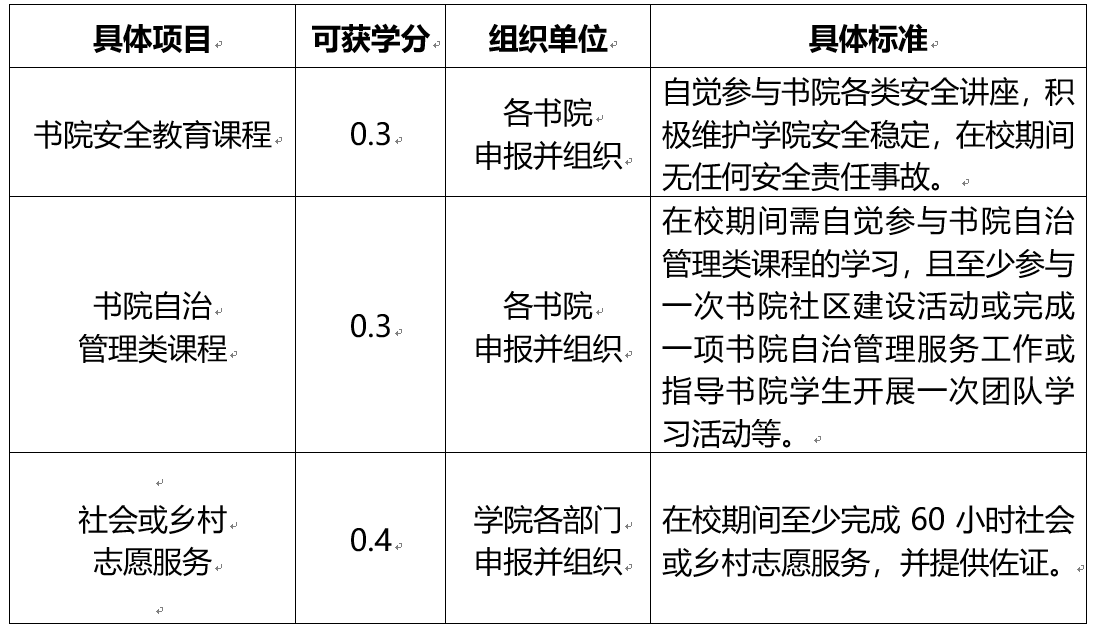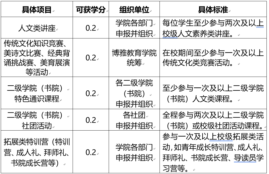 第二章 博雅素质分类选项课内容及学分标准
