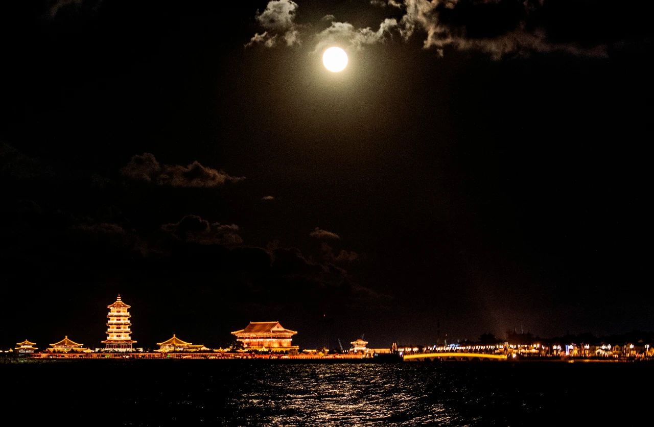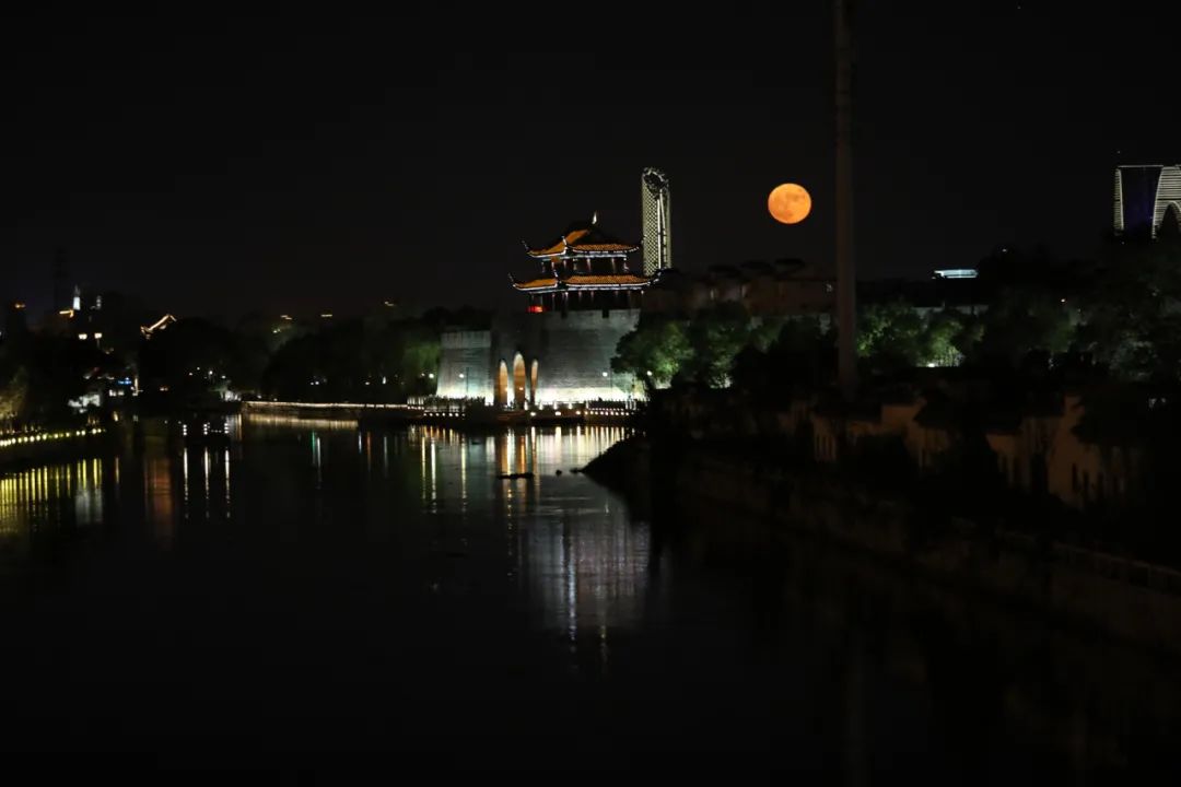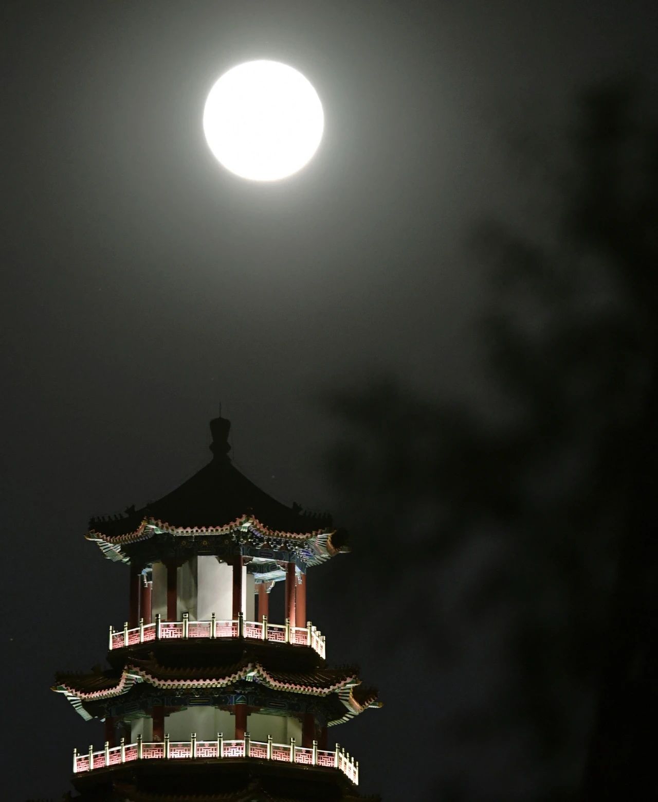 9月21日在南京夫子庙景区拍摄的圆月。新华社发(苏阳 摄)