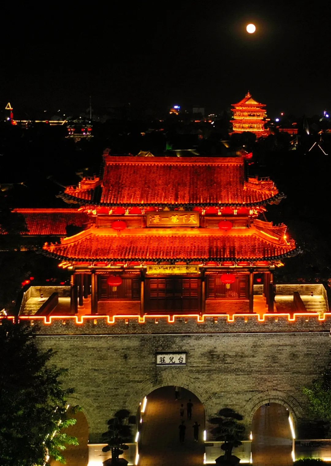 9月21日在山东枣庄台儿庄古城拍摄的圆月(无人机照片)。新华社发(高启民 摄)