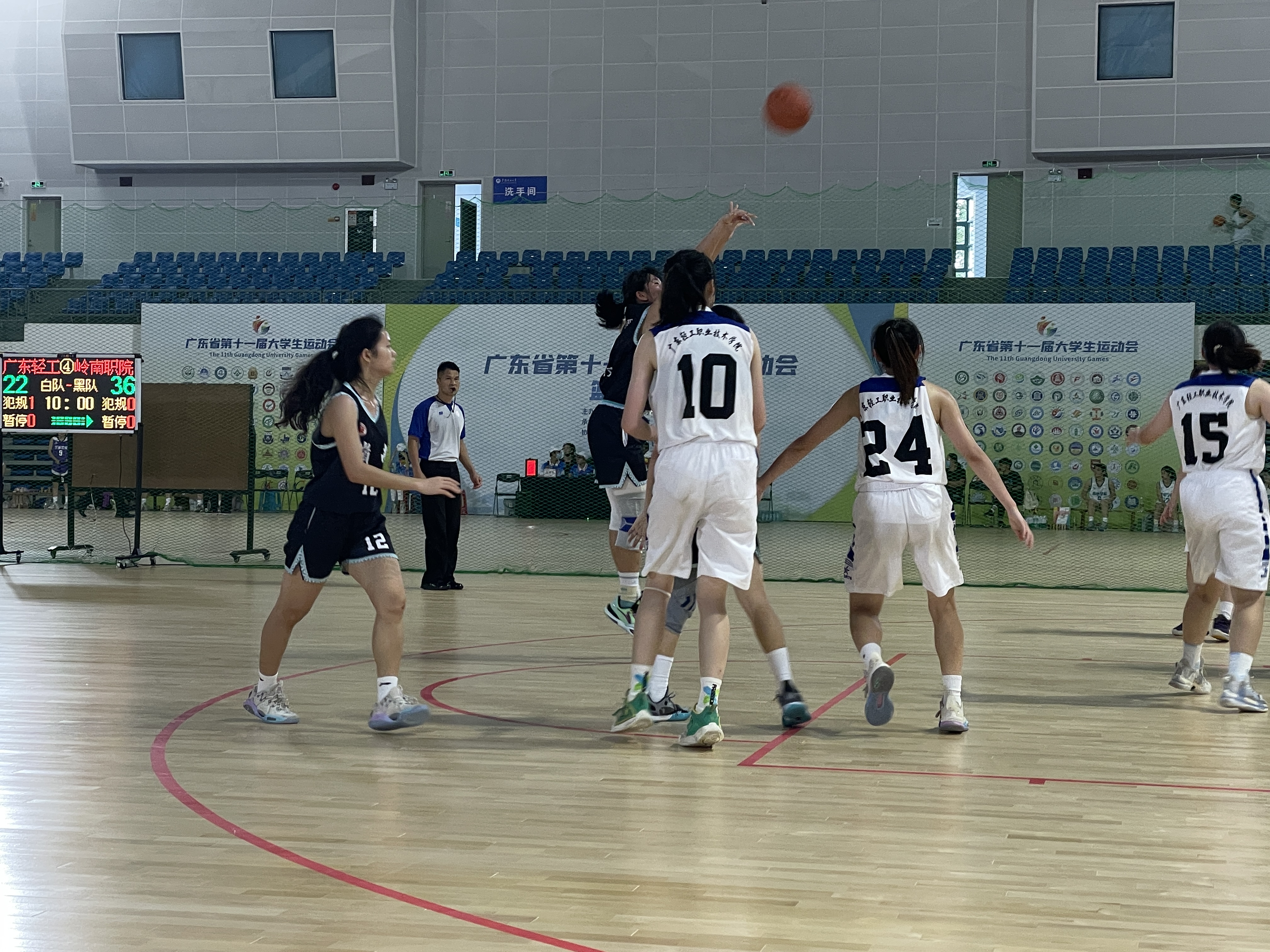 随后的第二阶段晋级赛中,不畏强敌,顽强拼搏,陆续淘汰了东莞职院、广东科学;在决赛中,以微弱劣势遗憾负于农工女篮,最终获得亚军。