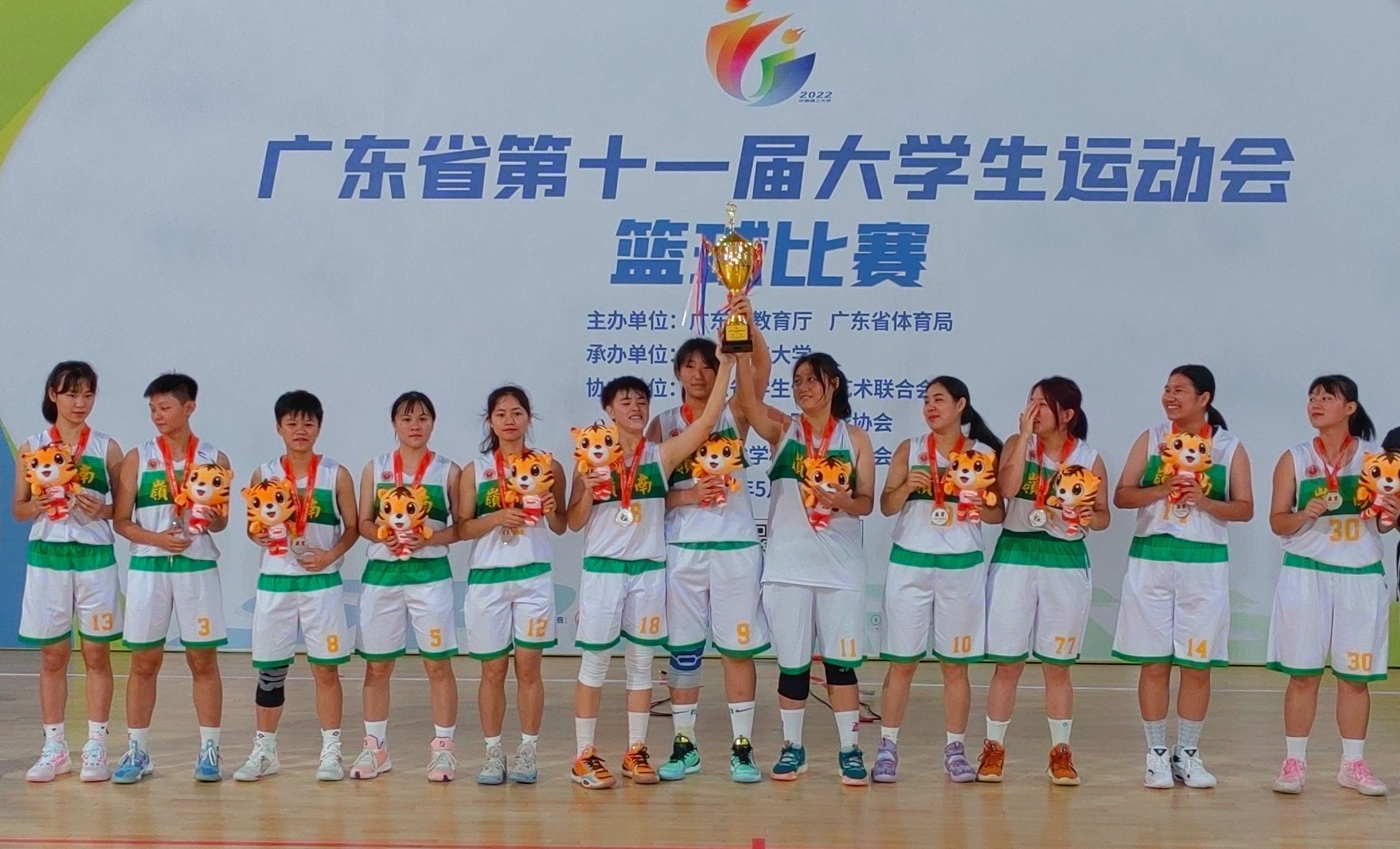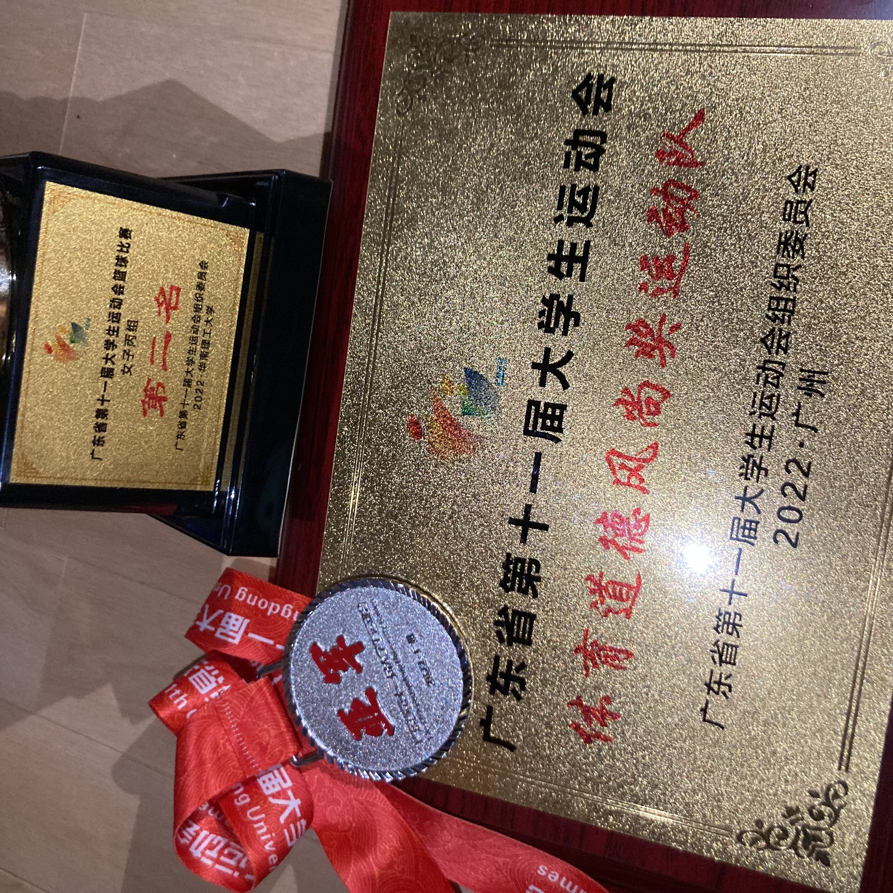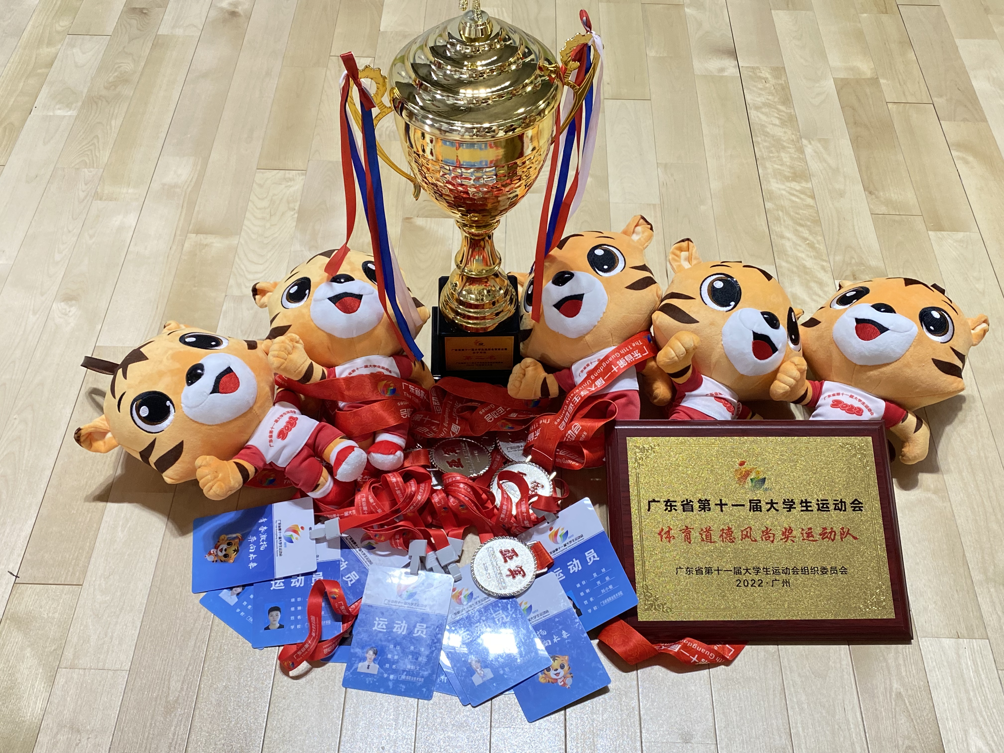 广东省第十一届大学生运动会篮球赛于2022613日至18日在华南理工大学(大学城校区)举行。历经6天六场的拼搏,我校女子篮球队一路过关斩将,最终以五胜一负的成绩,获得“2022广东省第十一届大学生运动会篮球赛女子丙组第二名”,打破了我校的历史成绩!另,我队获得团队“体育道德风尚奖”,及5名个人“体育道德风尚奖”的称号。