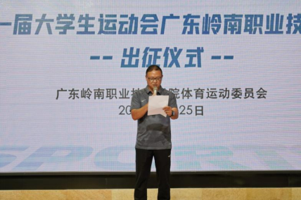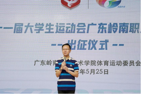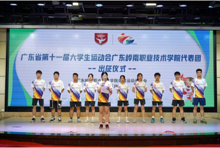 2022年5月25日,广东岭南职业技术学院健儿们踏上征途,出征广东省第十一届大学生运动会仪式在广州校区科七报告厅、清远校区博雅报告厅同步举行,并以抖音直播方式线上同步。党委书记柴克生、副校长李峻、校长助理兼代表团团长卜佳锐、博雅教育学院院长兼代表团副团长张丹、代表团秘书长苏娜娜及一线运动员、教练员共计132人出席本次出征仪式。