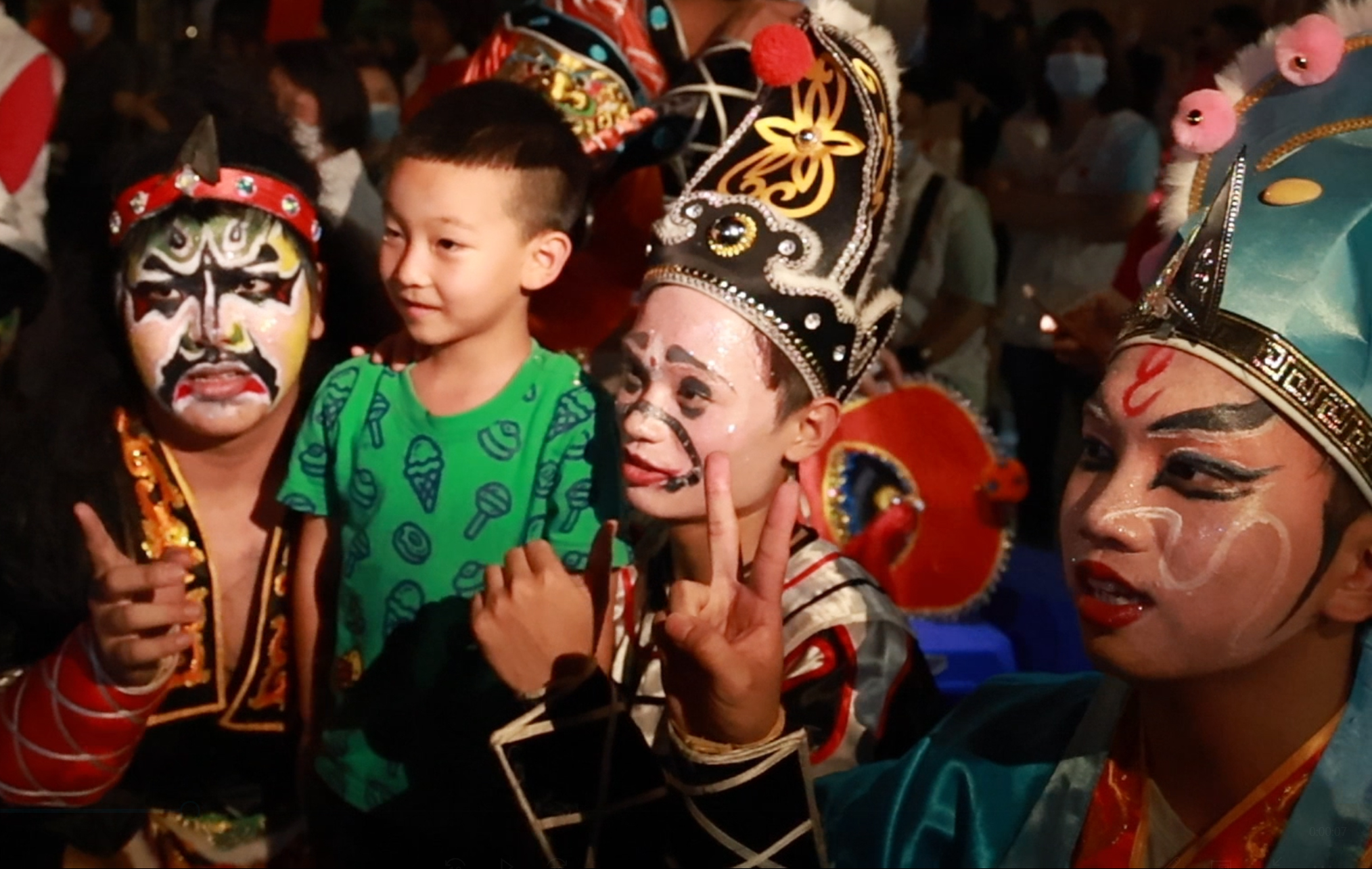 启动仪式现场,21位脸涂油彩,身着英雄好汉服装的英歌表演者在主持人的介绍下隆重登场,表演者们舞动手中的英歌槌,动作潇  洒利落,同时伴着激昂的锣鼓声卖力呐喊,气势如虹,把自己最好的状态展现给观众,获得现场观众雷鸣般的掌声。