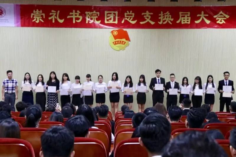 崇礼书院团总支部委员会、学生会、学生自律委员会、学生社团管理委员会、文娱部艺术团优秀干部进行聘书颁发