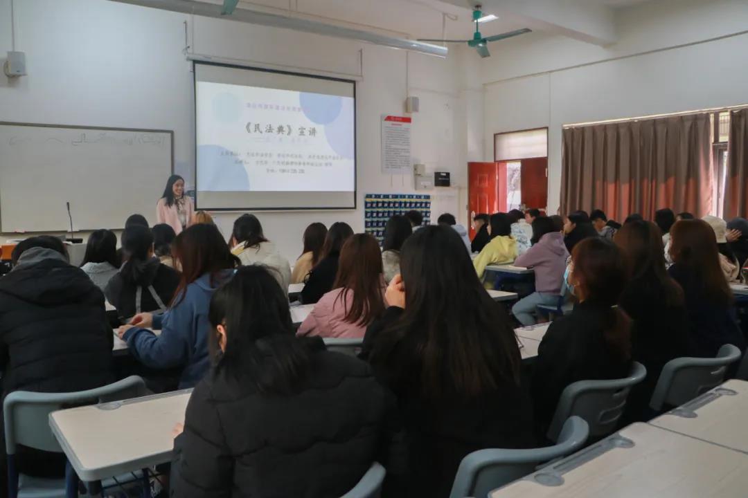 接着,方思华律师讲到,学生为什么要学习法律、什么是违法和犯罪、民法典的制定、民法典涉及青少年相关法律知识、结合校园常发生的一些不良现象以案释法,并且希望通过此次讲座加强未成年人用法律维护自身合法权益的意识。