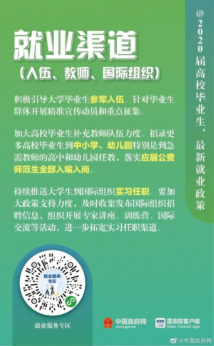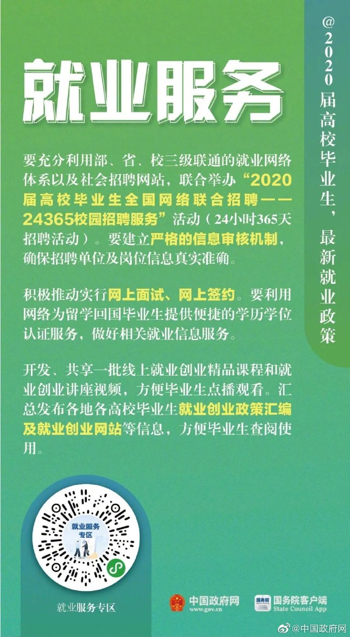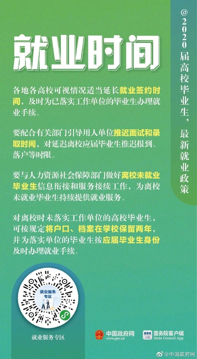 2020届高校毕业生,最新就业政策 2020/3/10 11:04:23 来源:中国政府网 发布时间:2020-03-10 08:55:07 浏览次数: 次 【字体:小 大】 终审:林明锋 相关内容 分享到: 【打印正文】 相关内容