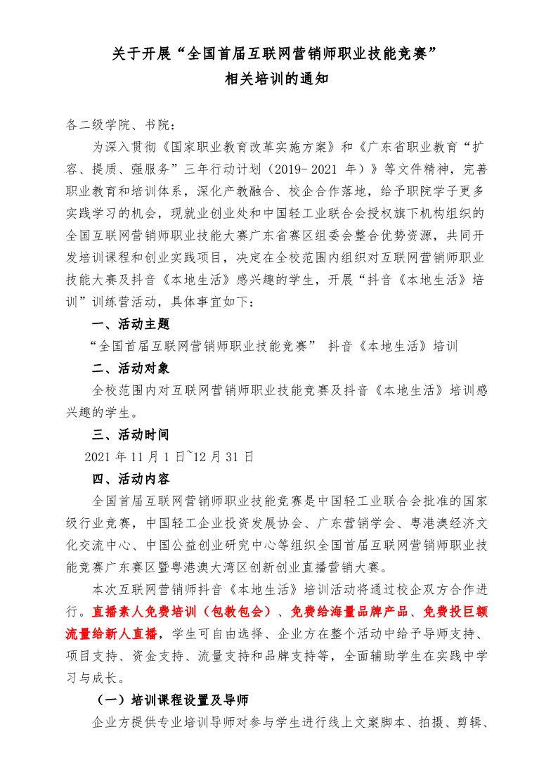 关于开展“全国首届互联网营销师职业技能竞赛”的通知