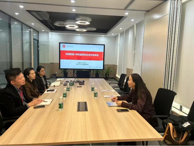 2025年11月12日上午,广东岭南职业技术学院校企合作与就业创业处204会议室内,校方代表与广东中科益民健康科技发展有限责任公司直营总监刘平平一行举行校企合作专题洽谈。双方围绕当前学生就业趋势、企业人才需求以及未来校企合作模式进行了深入交流。