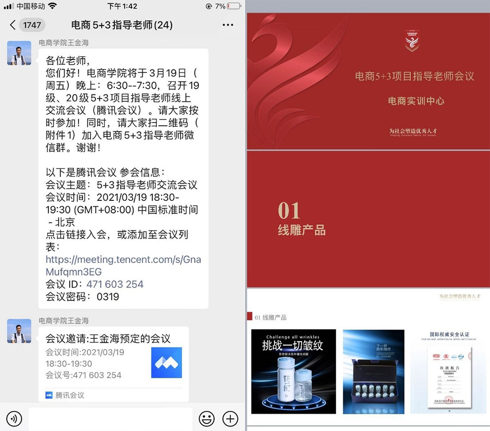 (一)电商实训中心主任就本学期5+3项目考核及相关安排;