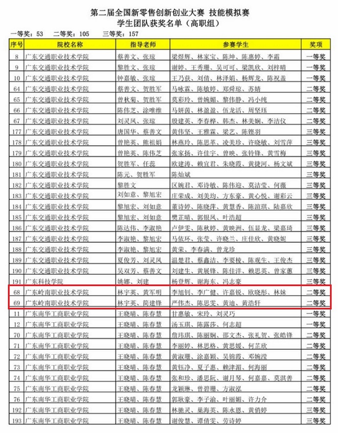我校电商学院致力于培养创新型电子商务人才,通过“以赛促教、以赛促学、以赛促用”,将“教、训、练、赛”融入日常教学中,逐步培养学生的逻辑分析能力、创新思维、创业能力。此次我校电商学院荣获全国新零售创新创业大赛二等奖,体现了岭南人努力拼搏的精神和优秀的技术实力,让我们为他们点赞!