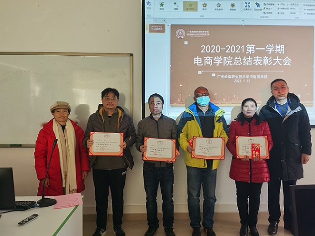 大会对2020-2021学年第一学期优秀教职工进行了表彰,共表彰获奖者12人、“校企合作先进个人”4人,“就业指导先进个人”4人、“指导竞赛先进个人”4人、“专业建设先进个人”4人。