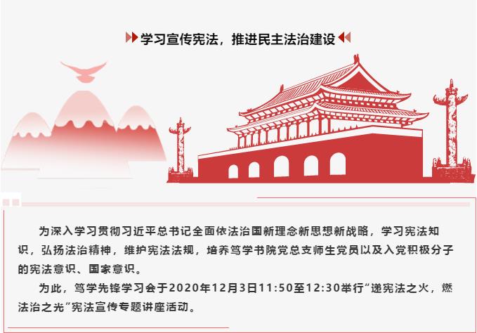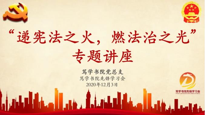 “递宪法之火,燃法治之光”专题讲座 来源: 发布时间:2020-12-09 15:30:40 浏览次数: 次 【字体:小 大】 “递宪法之火,燃法治之光”专题讲座 2020/12/9 15:30:40 分享到: 【打印正文】