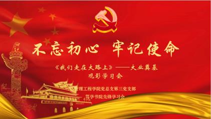 为积极响应党的号召,开拓进取,不忘初心,牢记使命,提高管理工程学院党总支第三党支部党员、入党积极分子的整体素质。笃学书院先锋学习会特于4月2日晚7点整举行“不忘初心,牢记使命——《我们走在大路上》之大业奠基”线上观影学习会。