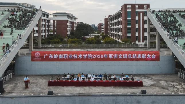 广东岭南职业技术学院于10月28日下午在足球场举行了2020级新生军训文训总结表彰大会,出席本次大会的有校领导、各职能部门负责人、各二级单位党政负责人、清远校区书院正副院长、2020 级全体新生及辅导员、黄埔突击队全体教官、学生工作部(处)及武装部相关人员。