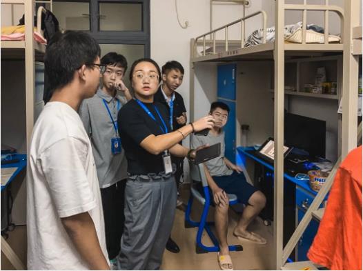 在走访宿舍的过程中,434的同学们主动向院长介绍并演示了数位板的功能以及使用方法。通过与他们的谈话,院长了解到434的同学们利用自己的闲暇时间,为即将到来的专业学习做好准备。院长对此给予了高度的赞誉,激励他们带好头,表好率。