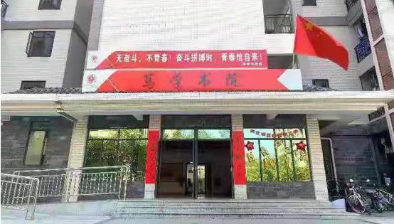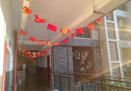 此外,各楼道都设置有以爱国主义为主题的校园文化景观,悬挂式小串旗、五星红旗气球……让笃学书院洋溢着一片幸福的“中国红”。