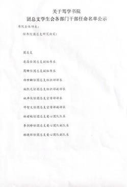 公示 | 关于笃学书院团总支学生会委员会与各部门干部任职的通知 来源: 发布时间:2019-12-24 23:39:09 浏览次数: 次 【字体:小 大】 公示 | 关于笃学书院团总支学生会委员会与各部门干部任职的通知 2019/12/24 23:39:09 分享到: 【打印正文】