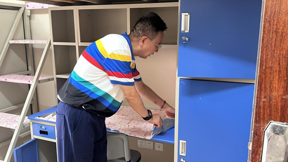 在关注新生生活适应情况的同时,李峻副校长重点检查了宿舍的安全保障与设施配备情况。他仔细查看了宿舍内的电路开关、插座是否存在安全隐患,消防器材是否配备齐全且在有效期内,门窗关闭是否顺畅,以及卫生清洁状况等。针对检查中发现的个别宿舍物品摆放不够整齐、部分设施轻微损坏等问题,他当场要求后勤管理处及书院负责人限期整改,务必为新生营造安全、整洁、舒适的住宿环境。