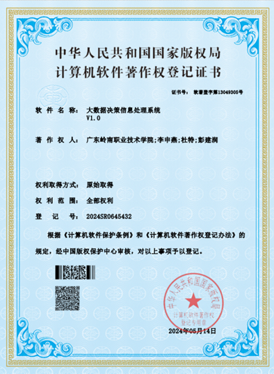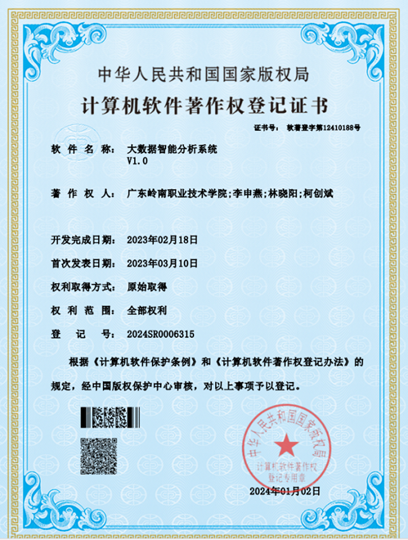 专利申请:学生参与或主导的专利申请,获得软件著作权10项。