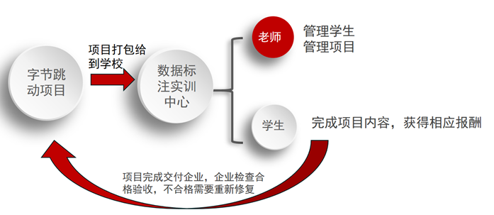 企业参与人才培养,学生有参与的更多项目实践、更好的发展平台更多参与实践的机会,与字节跳动有限公司合作的数据标注真实项目,以数据服务项目合作为切入点,结合院校具体情况充分发挥企业与院校优势,提升学生数据服务相关实用技术能力,积累广为实战经验和增加职业素养,拓展就业渠道。