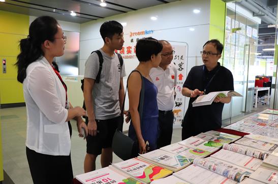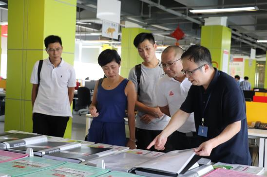 南方报业传媒集团领导一行莅临科技中心C座4楼,首先参观了由陈宏老师及中小企业创业与经营专业教师队伍共同编著的情景化可视化创新创业系列特色教材,陈宏老师向各位来访领导介绍了这一系列教材的特色之处、使用意义及方法。老师应是情景式教案的“设计者”,生动化课堂的“参与者”和学生成果的“促成者”,这句话是创新创业教育师资团队教学的始终贯彻的宗旨,也引起在场所有参观交流客人的共鸣。