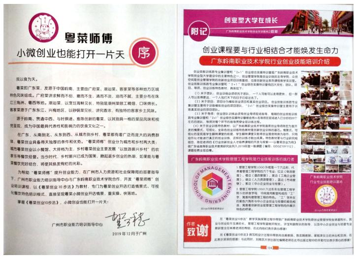 《粤菜创业10步法》的创作来源于2019年6月至10月由陈宏老师主持,联合广州市职业能力培训中心、广州蚁米孵化器有限公司、学院就业创业处、中小企业创业与经营专业教师团队完成的横向课题——“粤菜师傅”创业培训课程开发项目。陈宏老师作为首期“粤菜师傅”创业培训班的主训人,使用《粤菜创业10步法》教材样本,配套教学计划、教学大纲、PPT课件、试卷等,顺利完成了为期三天的课程培训。首期“粤菜师傅”创业培训班获得了学员的一致好评,从收集的培训反馈意见看,评价相当高,也对后期的系列培训寄于了殷殷期望。《粤菜创业 10 步法》出版后,成为广州市粤菜师傅创业培训项目指定教材。