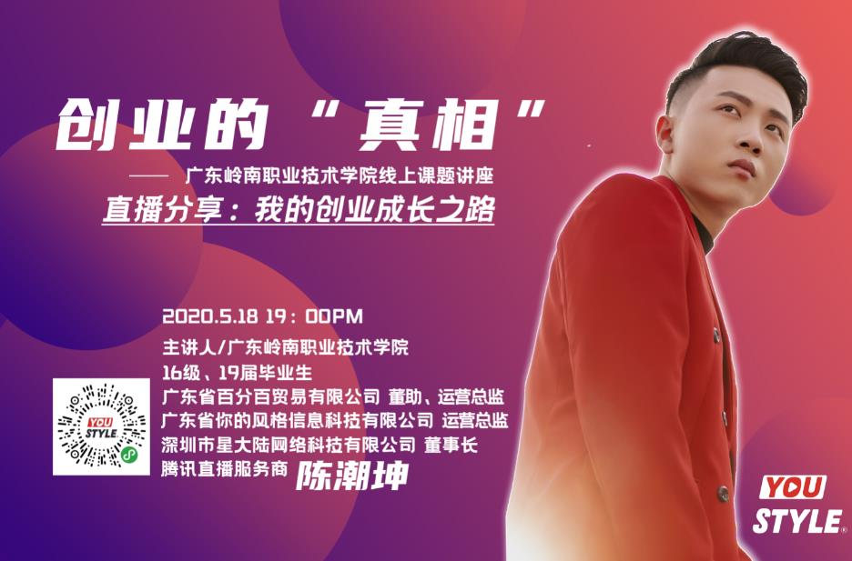 2020年5月19日晚上7点,19届毕业生陈潮坤师兄在自己的直播公司给师弟师妹们分享了自己的创业成长之路!学院包含2020级的新生共3000多名学生参与了在线交流。