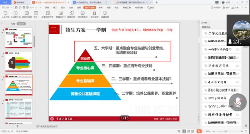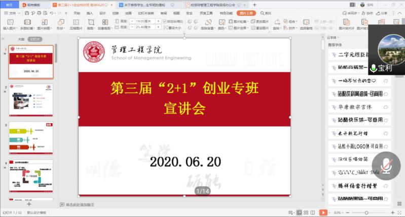 为推动学校十三五规划建设和落实创业型大学实施计划,培养专业教育与创业教育复合型人才,6月20日上午,管理工程学院利用腾讯会议平台,召开第三届2+1创业专班宣讲会,会议由管理工程学院许宝利副院长主持并进行宣讲。