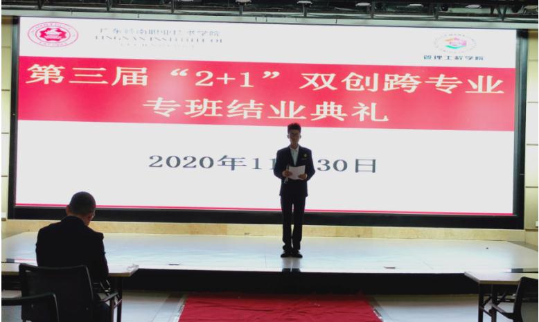 许宝利副院长对同学们顺利结业致予诚挚的祝贺,并表示“2+1”创业专班是由来自不同的专业的优秀学子组成的创新创业特色教学班级,希望同学们发挥自身的优势,在合适的岗位上发光发热。今天的结业典礼将是一个全新的起点,是万里征程的成功第一步,是梦想开始的地方;而岭南管理工程学院2+1创业专班则是一片丰沃的双创的土壤,希望同学们成功之后能多回来看看,为师弟师妹作出榜样、指明方向;也为岭南创业型大学的传承作出贡献。
