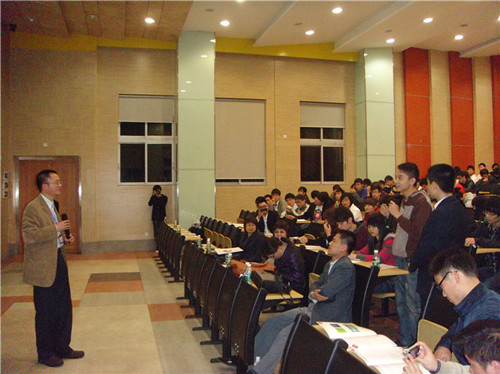 广州竞的竞得信息科技有限公司朱志方总经理对公司概括以及此次合作项目竞的竞得优选竞价采购系统的技术性知识作了初步的介绍。并与我院200多名学生进行近距离对话。我院学生对项目热衷的提问,以及朱志方总经理的专业又不失幽默的回答,使得会场气氛浓烈。